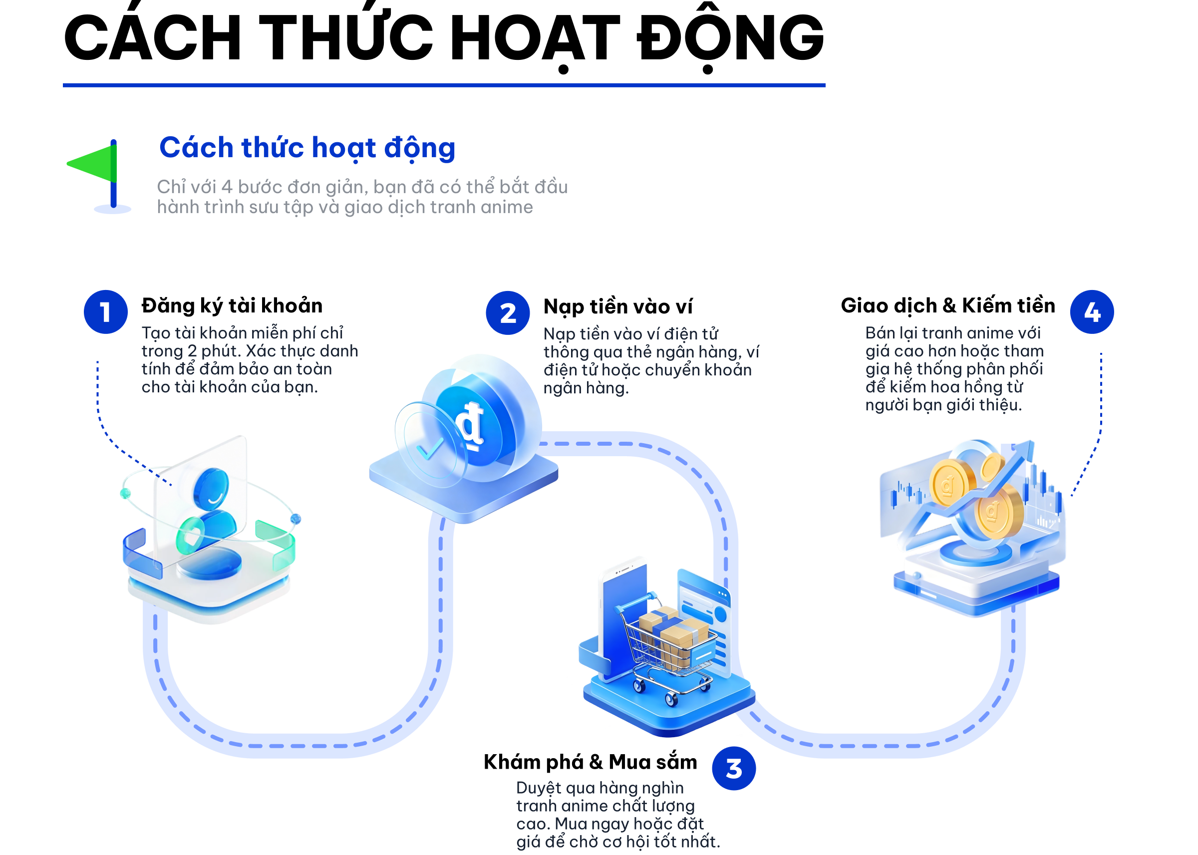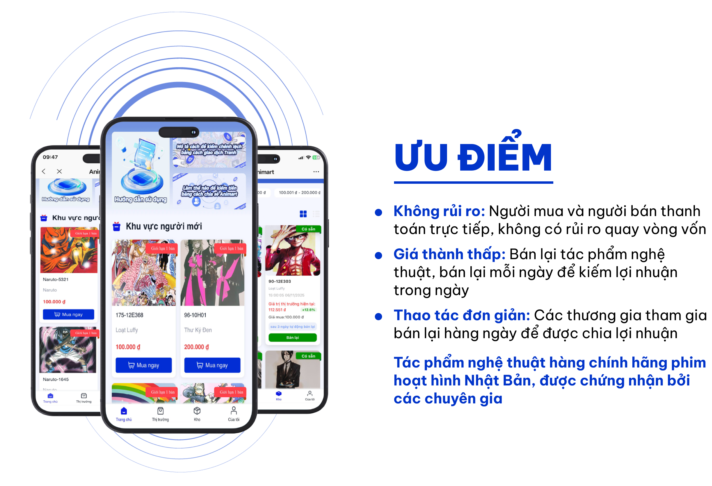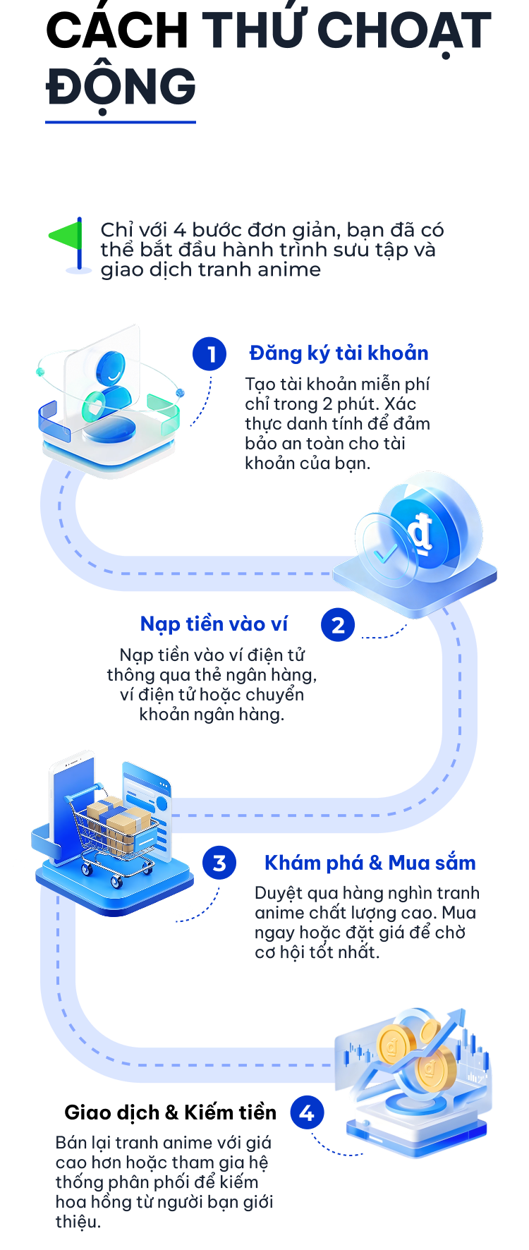 Hệ thống bảo mật đa lớp đảm bảo tính minh bạch và an toàn cho mọi giao dịch. Mỗi tranh anime được xác thực và bảo vệ khỏi việc sao chép trái phép.